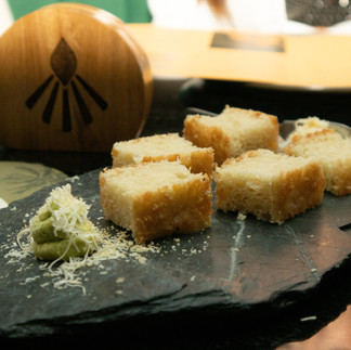 Durante mi visita con amigos, comenzamos con un carpaccio de res: finas láminas de solomito bañadas en una salsa oriental cítrica, acompañadas de mézclum y queso parmesano. También disfrutamos de unos tacos de pulpo parrillado, glaseados en chimichurri de la casa, servidos sobre aguacate y puerro picante.