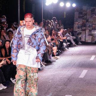 La pasarela de Land of Flowers no se limitó a los confines de una pasarela convencional, sino que se extendió a las calles del barrio, llevando la moda directamente a la comunidad. Esta decisión de llevar la pasarela a la calle resalta la conexión de la colección con la vida urbana y la cultura local.