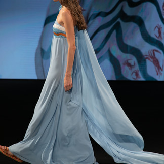 La inspiración de está panameña es la naturaleza: La tierra, el campo, lo rural. En cada colección ella explora las raíces y todo lo que entrelaza su filosofía con el textil; dando como resultado siluetas frescas, amplias y cómodas, prints abstraídos de las memorias y el estilo de vida campestre latinoamericano. El distrito Pedasí, provincia de Los Santos fue el lugar donde se inspiró; por sus playas, colores, texturas, siendo la moda un canal para mostrar la belleza de sus paisajes. Vestidos delicados y fluidos hicieron de que el desfile tuviera ese toque de magia playero. Escotes en barco, boleros, hombrera y cortes asimétricos resaltaron con una paleta de colores naranjas, azules, verdes y amarillos.
