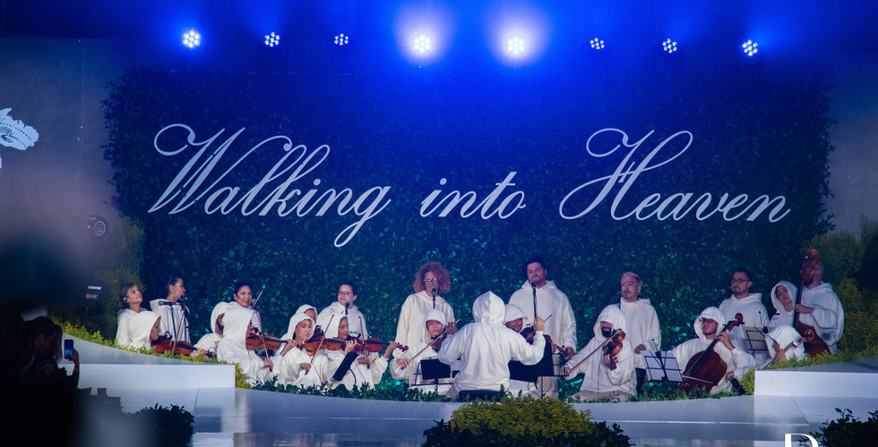 Camerata Jaibaná fue la orquesta encargada de abrir el desfile junto con Soul Gospel Medellín con un coro celestial con una base de sonidos urbanos como lo es el Rap. Walking Into Heaven es una mezcla entre lo contemporáneo acompañado de gráficos del arte romántico: Querubines, flores y corazones fueron los principales gráficos en esta colección plasmando la nostalgia y el amor.